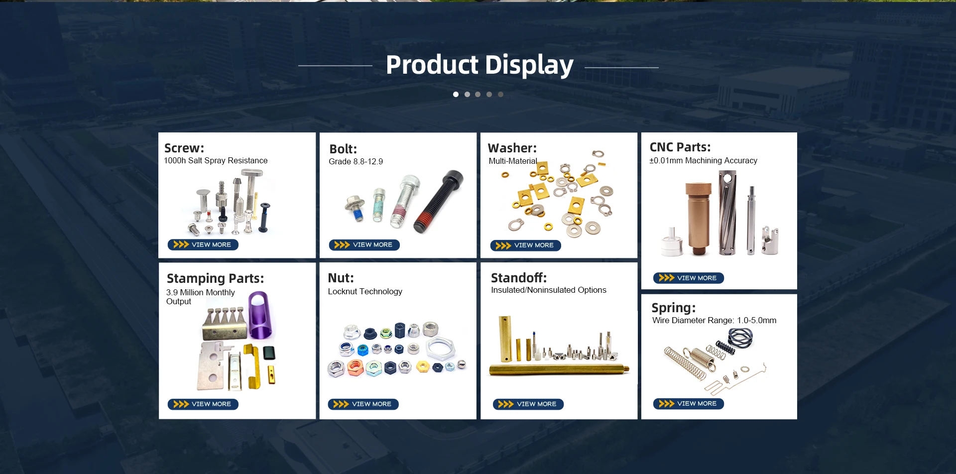 Principais produtos:Parafusos, parafusos, porcas, peças de usinagem CNC, molas